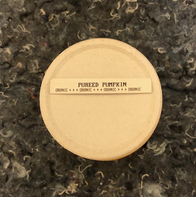 Chemical/Pesticide-free Pumpkin from Lancaster County. Cooked in glass and preserved in a water batch for prolonged storage.